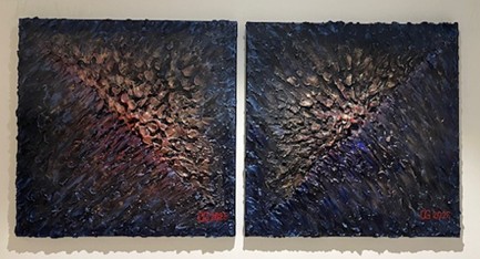 Autumn Sunset 50×50, 2025, plaster and acrylic on canvas